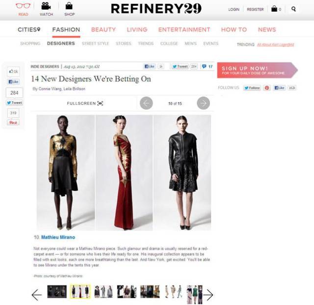 Refinery 29 is featuring Mathieu as a fashion designer to watch.