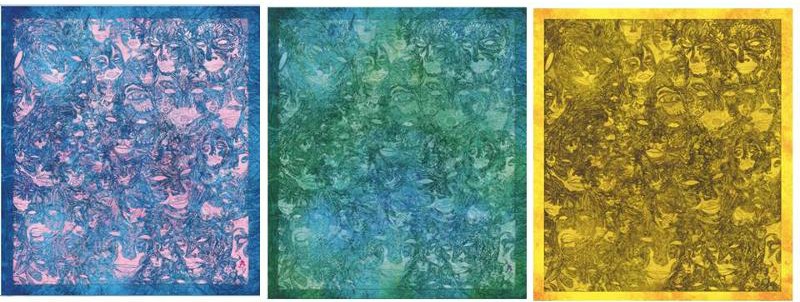 The Faces scarf is 54×64″ and comes in a palette of hues including blue/pink, blue/green, and golden/brown. Each unique piece is available in Viscose, Silk Yoryu, and Silk Habotai, ranging in price from $135-$195.00.