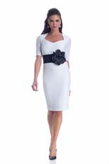 Sweetheart Neckline Ottman Knit Dress with Flower Belt $300